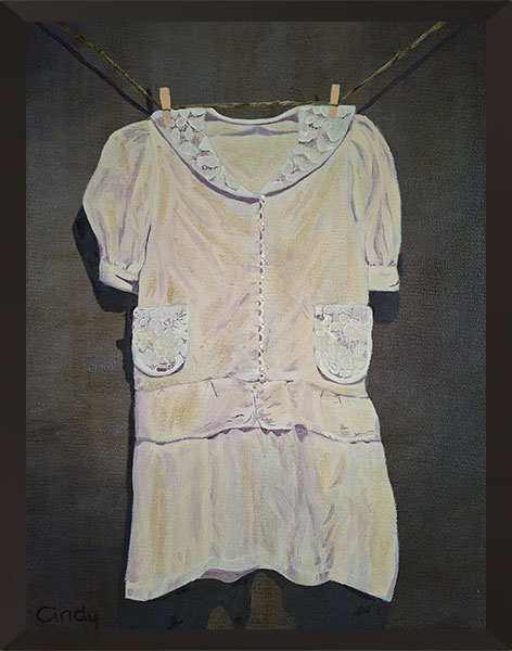 Mijn bruidsmeisjes jurk van vroeger, geschilderd in de stijl van Jopie Huisman